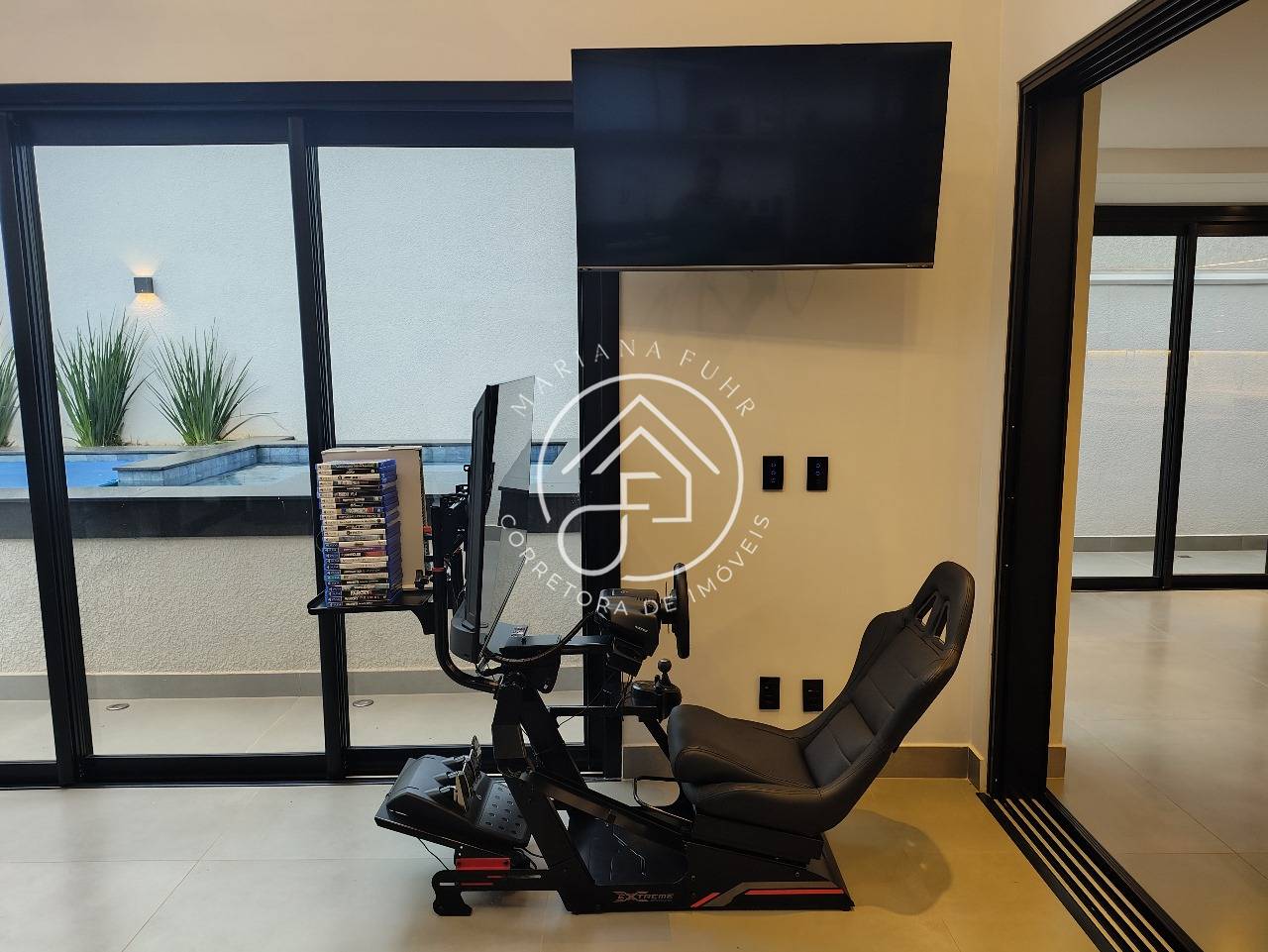 Todas as suítes mobiliadas, interruptores touch inteligentes, ar condicionado nos comodos, 2 Receiver Denon + JBL sonorização completa em diversos ambientes, lareira, 1 Cockpit StockCar PS5, sistema elétrico automatizado, carregador para carro elétrico, 2 central casa inteligente, cortinas e venezianas automatizadas, piscina com aquecimento solar, etc.;
